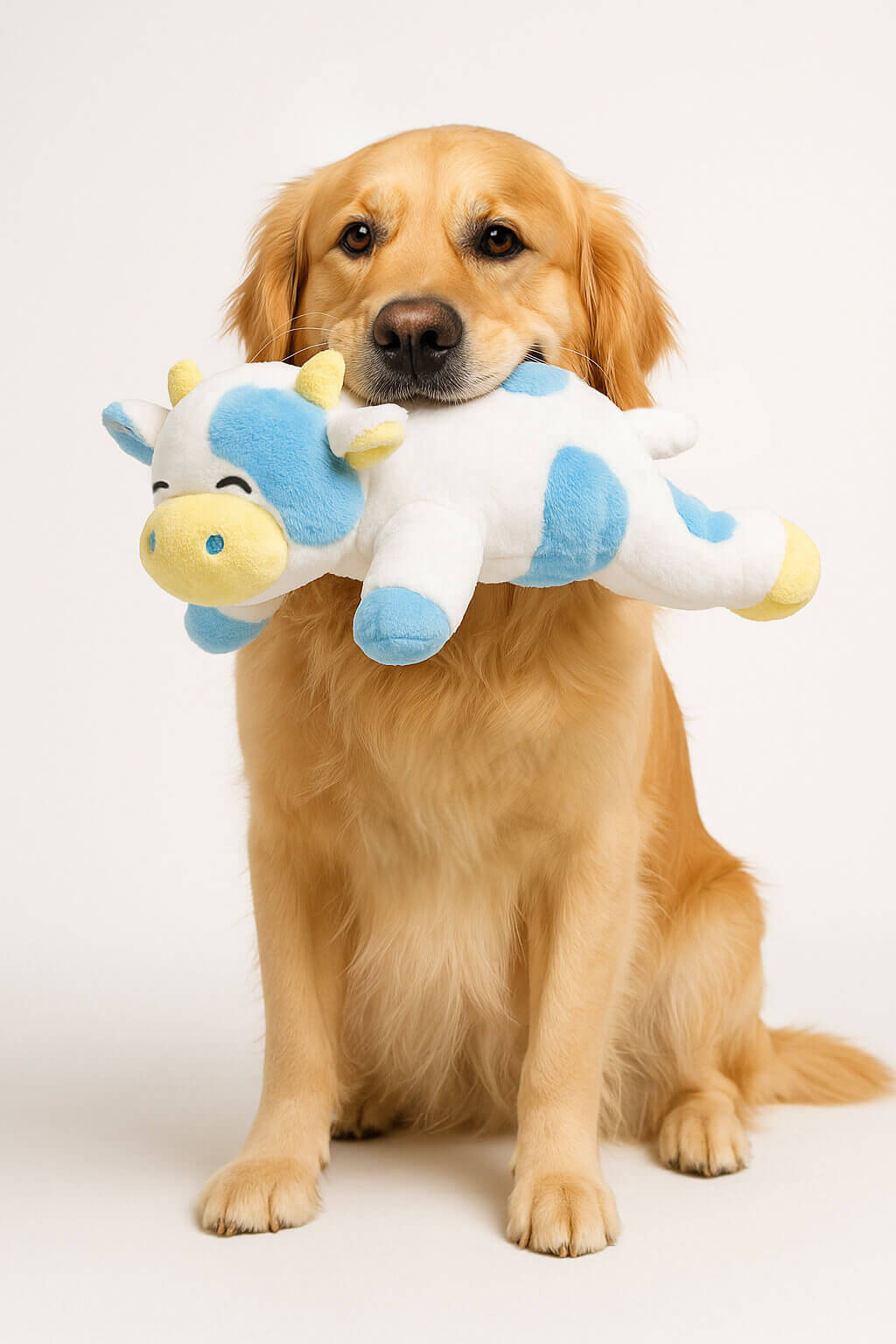 Meet Moo, the adorable, immaculately designed cow friend made for your dog's dichromatic vision. With calming shades of dreamy blue, buttery yellow, and creamy white, Moo offers high-contrast playtime for your pup. Moo’s favorite pastime is spotting clouds that look like his farm friends.